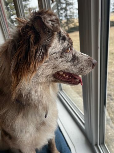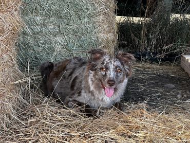Kaycee is our prized Aussie. With an outstanding pedigree full of champions and titles- she is the whole package. Slash V is the majority of her lines- a strong working name that has been around for a long time. These Aussies are the originals- well before show lines, and the “minis” and “toys”. She is everything an Aussie should be, I'm so thrilled to have her part of our program and a companion that's always by my side.