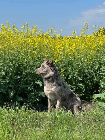 Kaycee is high drive- extremely intelligent. She is our alpha female - keeps the pack organized and well mannered. Loyal to her family, very focused and ready to work for you. Kaycee will spend a day working on the farm, will play with her herding ball and frisbee for hours on end- but just as content laying on the couch. She wants to be with you- and please.