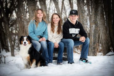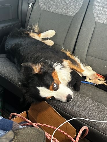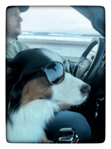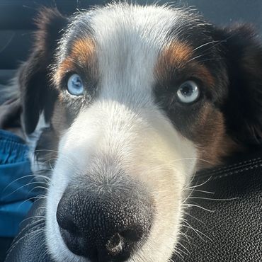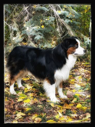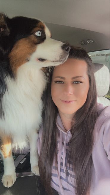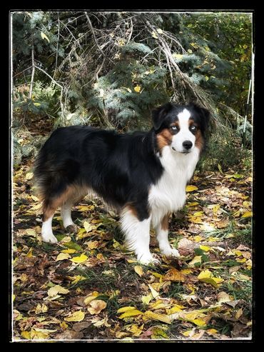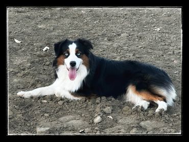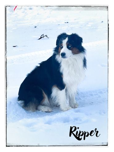 Ripper ! He is our family dog. If he can come in the vehicle he is with us. When we are at home he is by our side. He sleeps beside our bed and is on every trail ride with the horses. Ripper has never met a stranger. The friendliest dog ever. He is the one who teaches the puppies the ropes around the farm- protects them- and so gentle.