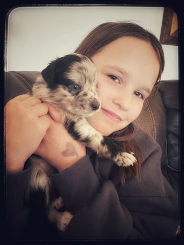 She has spent all her time beside Kaycee- learning the ins and outs from her mother. - the result has been amazing. Zara is medium/high drive with an off switch that stands out. Extremely intelligent - learns commands in a matter of minutes. After a day out on the farm- she loves cuddling on the couch and turns into a little baby.